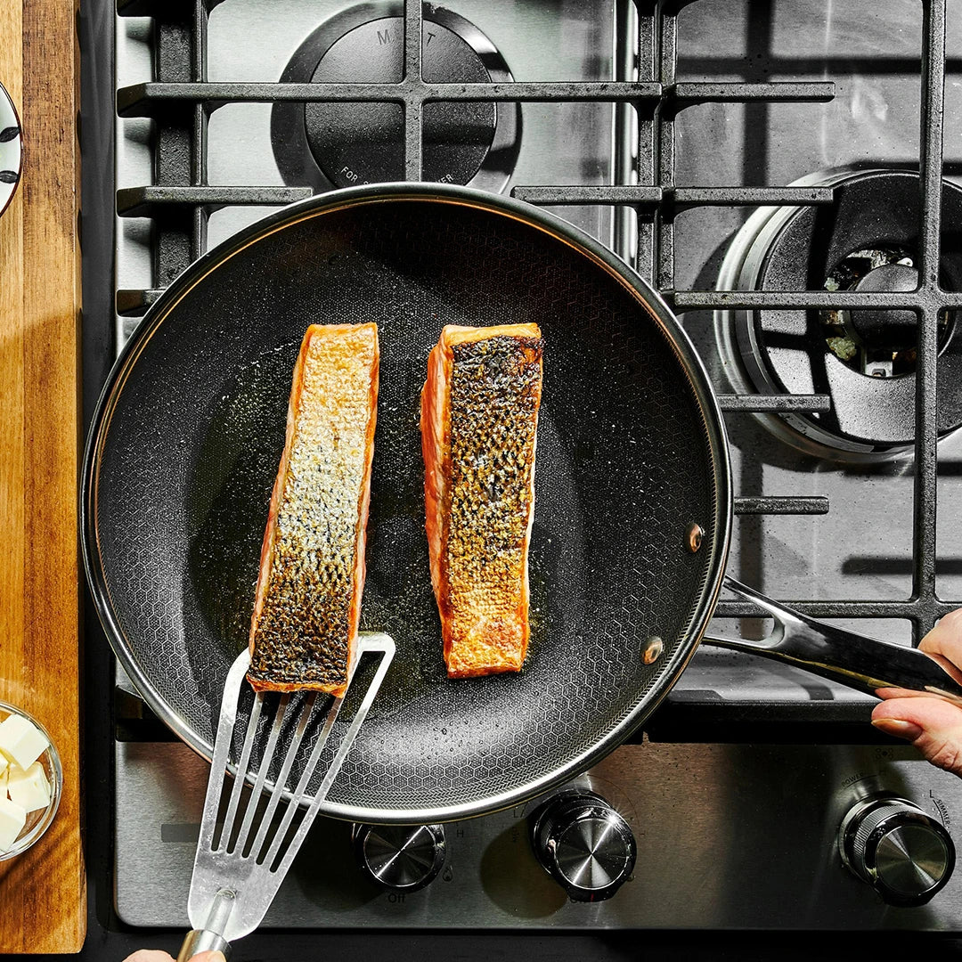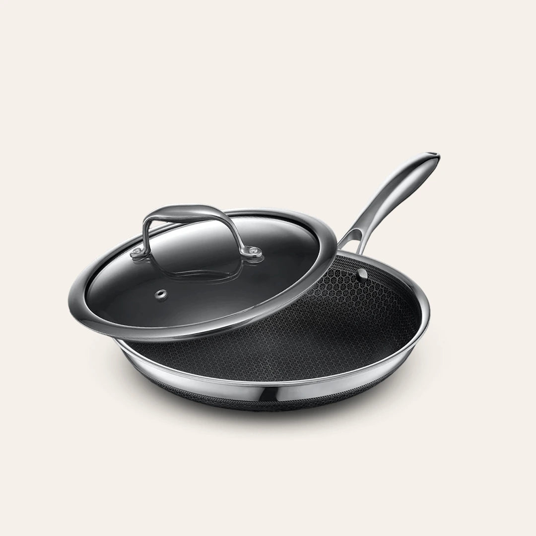 Hoto ™ pārklājums ļauj jums vienmērīgi apcepties pannā un katlā - piešķirot produktiem zelta garoza, karamelizēt dārzeņus vai grauzdējošu gaļu. Pateicoties augstām sienām, jūs pat varat salikt tās pašas sastāvdaļas to pašu sastāvdaļu katlā vai vārīt, nepārvietojoties uz citu konteineru.