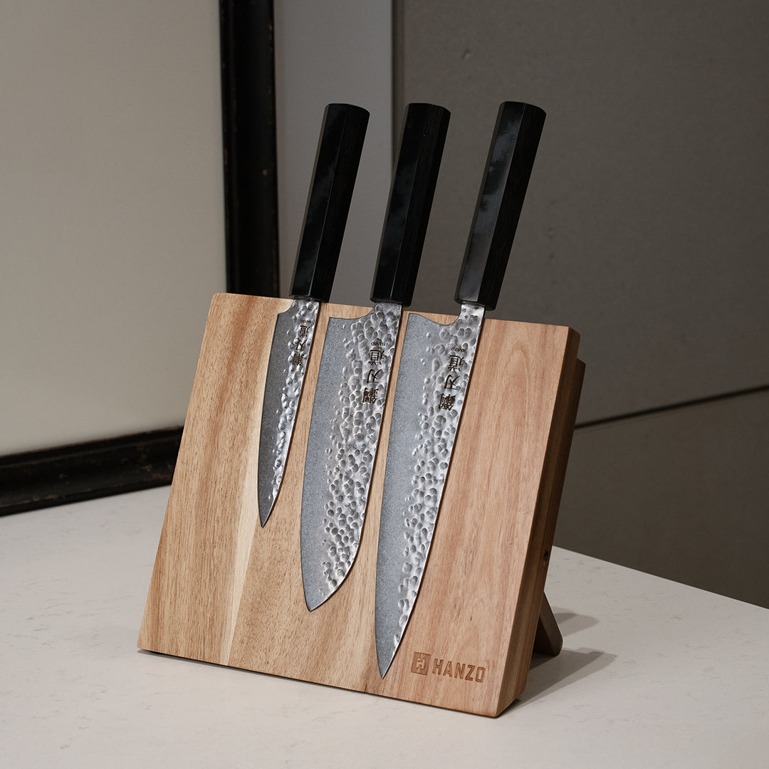 Kokybiški, aštrūs, patogūs peiliai. Man ypač patinka universalus, o su santoku labai patogu smulkinti riešutus, žoleles ir pan. Naudojam su malonumu :)