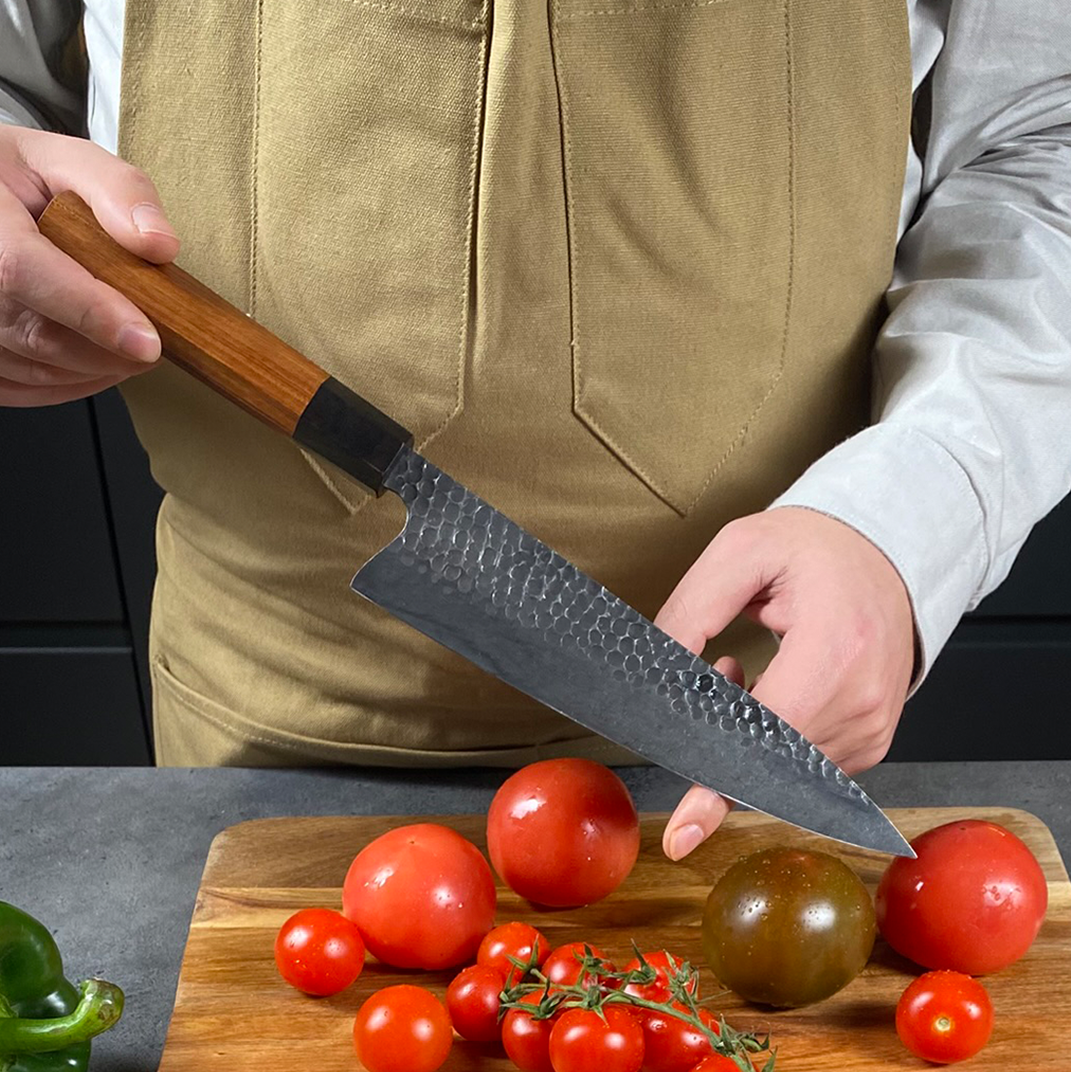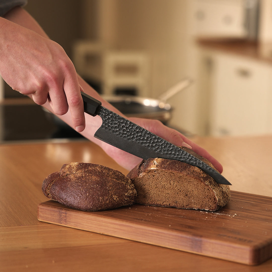 Meistarīgi līdzsvarots 20 cm asmens nodrošina perfektu kontroli un samazina rokas nogurumu.